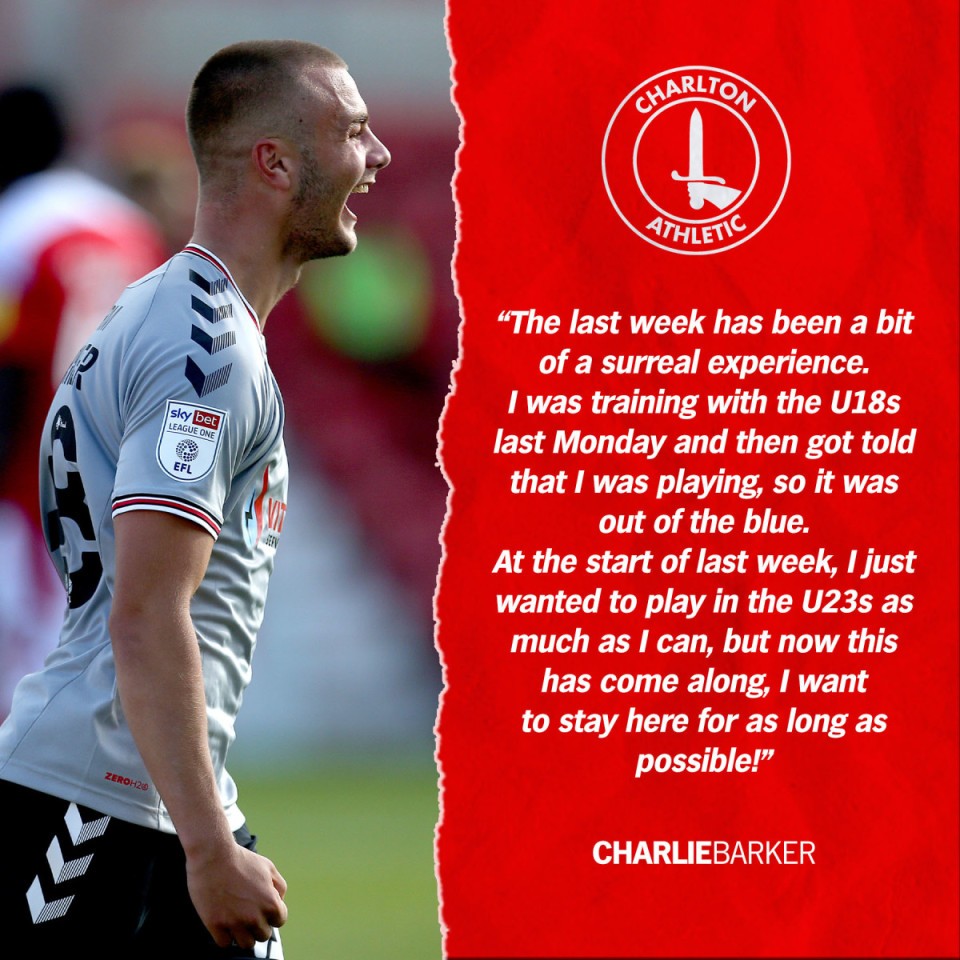 Charlie Barker revealed his delight and surprise after the Addicks youngster capped off an extraordinary week with a goal in Saturday’s Carabao Cup victory at Swindon Town.