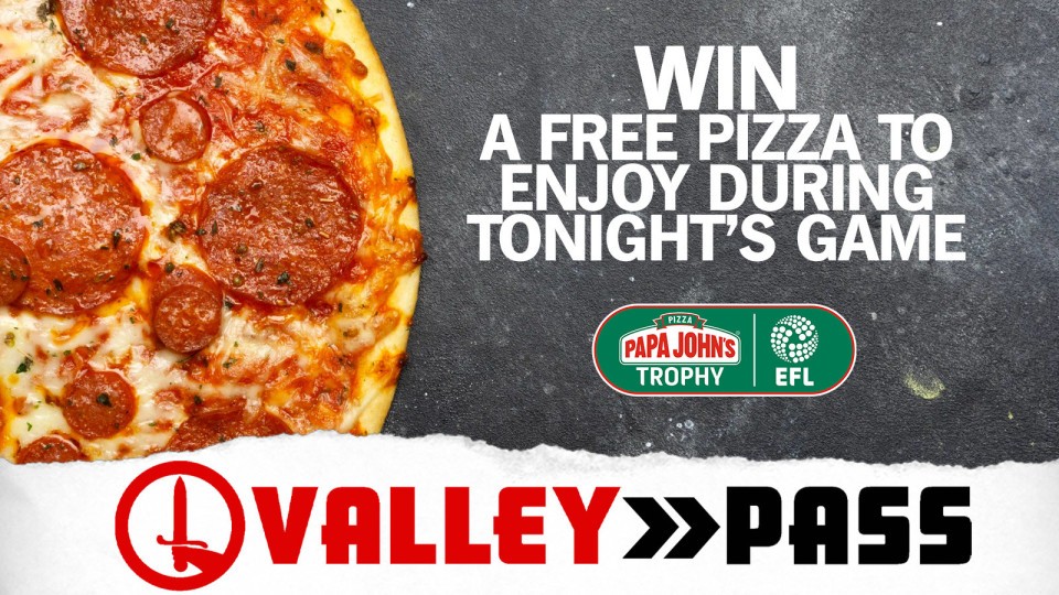 Any supporter who purchases a match pass for Tuesday’s game against Leyton Orient before 6.30pm on the day of the game, will be entered into a draw to win a large Papa John’s pizza to watch the game with.
