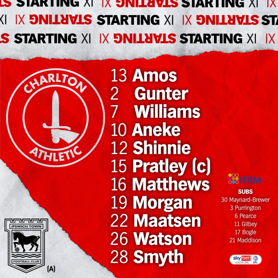 Chuks Aneke, Albie Morgan and Jonny Williams will start for the Addicks in today’s game against Ipswich Town.