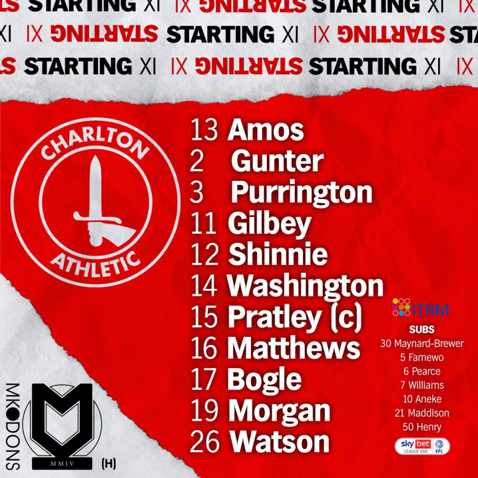 Charlton: Amos; Matthews, Gunter, Pratley (C), Purrington; Watson, Shinnie, Morgan, Gilbey; Bogle, Washington