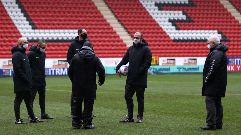 Following a heavy downfall of rain in the last 24 hours, referee Robert Madley carried out a pitch inspection on the Valley’s turf and deemed it to be unplayable ahead of the clash with Pompey.