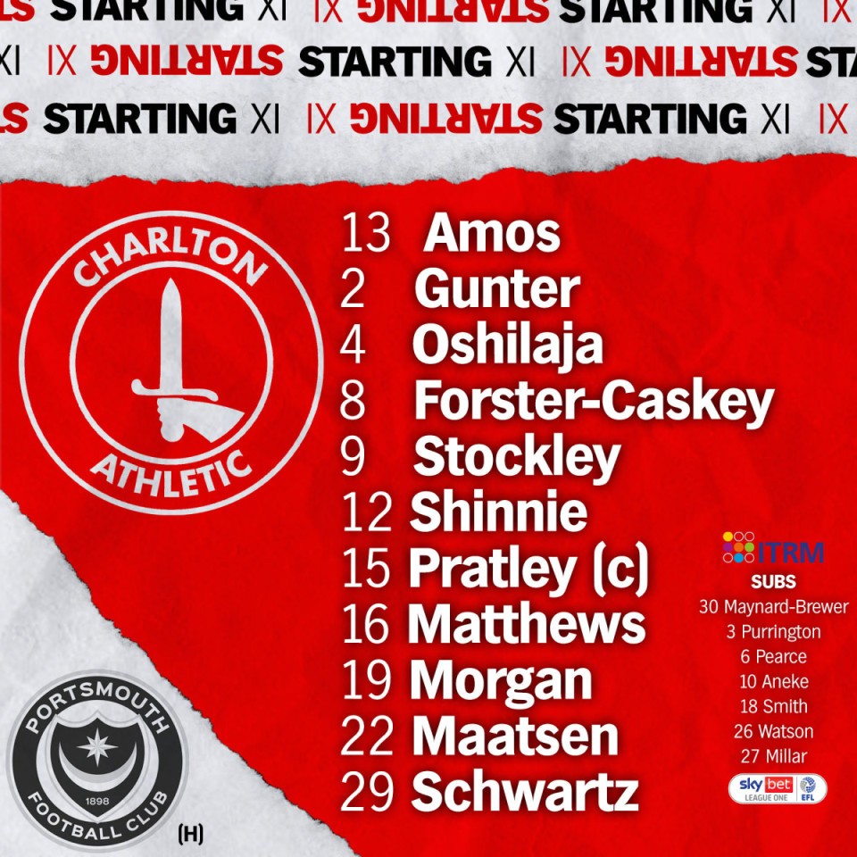 Charlton: Amos; Matthews, Gunter, Oshilaja, Maatsen; Morgan, Forster-Caskey, Pratley, Shinnie; Stockley, Schwartz.
