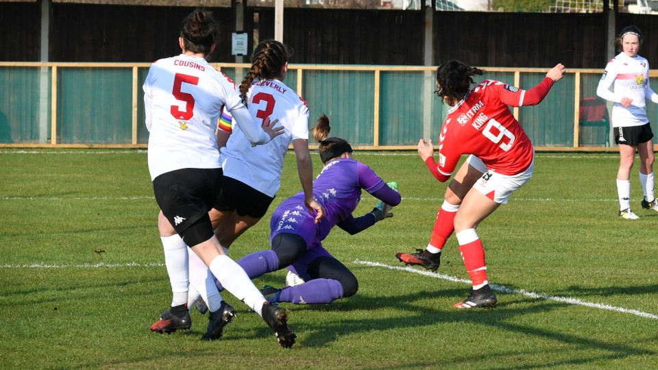 Jess King’s 49th minute opener against her former club was cancelled out moments later as a defensive mix up between Grace Coombs and Eartha Cumings allowed Ini Umotong to slot home.