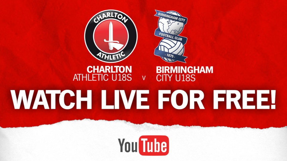 Supporters can watch Charlton U18s' crucial play-off semi-final against Birmingham City for free, live on the club’s YouTube channel on Saturday at 1pm.