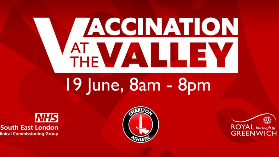Wayne Mumford, Charlton Athletic’s Commercial Director, said: “Charlton has a long history of excellent work in the local community and we’re pleased to be joining forces with the Royal Borough of Greenwich council and South East London Clinical Commissioning Group on this important activity as we all work towards a return to some sort of normality. As well as offering a free ticket to the first 1,000 vaccinated on Saturday, we’ll have plenty going on at The Valley. Anyone attending will able to go pitchside, take part in a variety of competitions and enjoy a full programme of content on our big screen.”