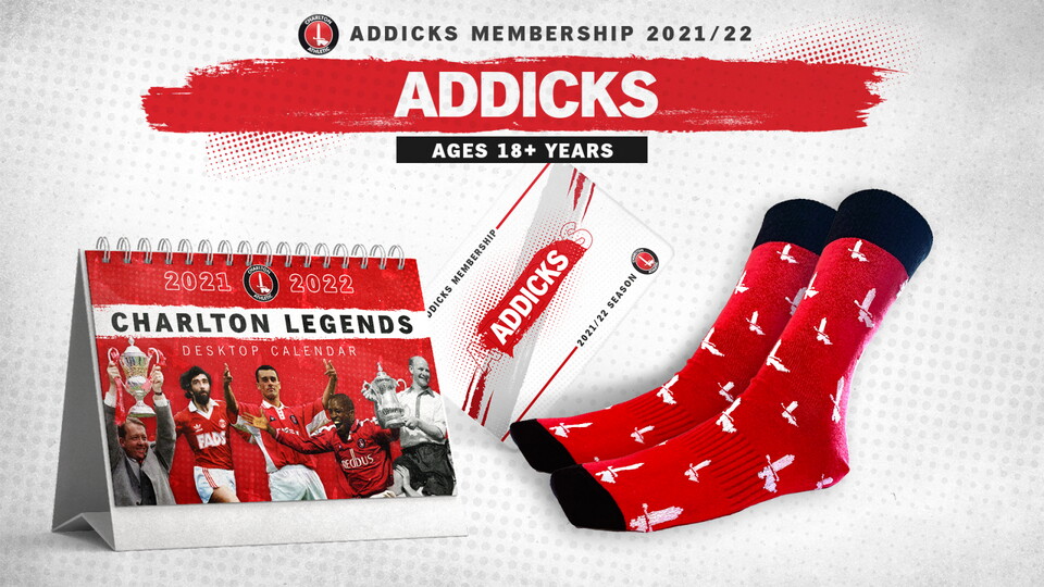The adult Addicks membership is for supporters aged 18 and over and gives you the chance to show off your support for your club with an exclusive pair of specially-designed lucky Charlton socks and a Charlton legends desk calendar!