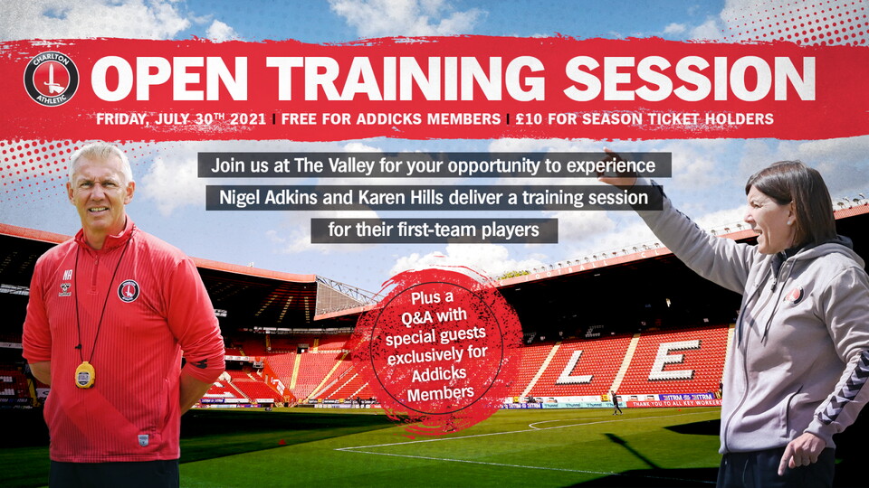 Charlton members can reserve their place at a special open training session at The Valley on July 30th.