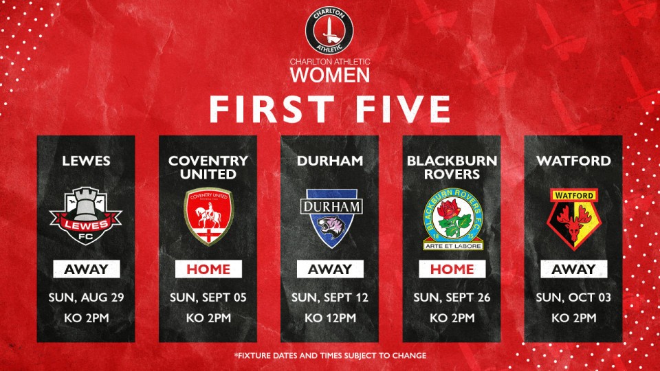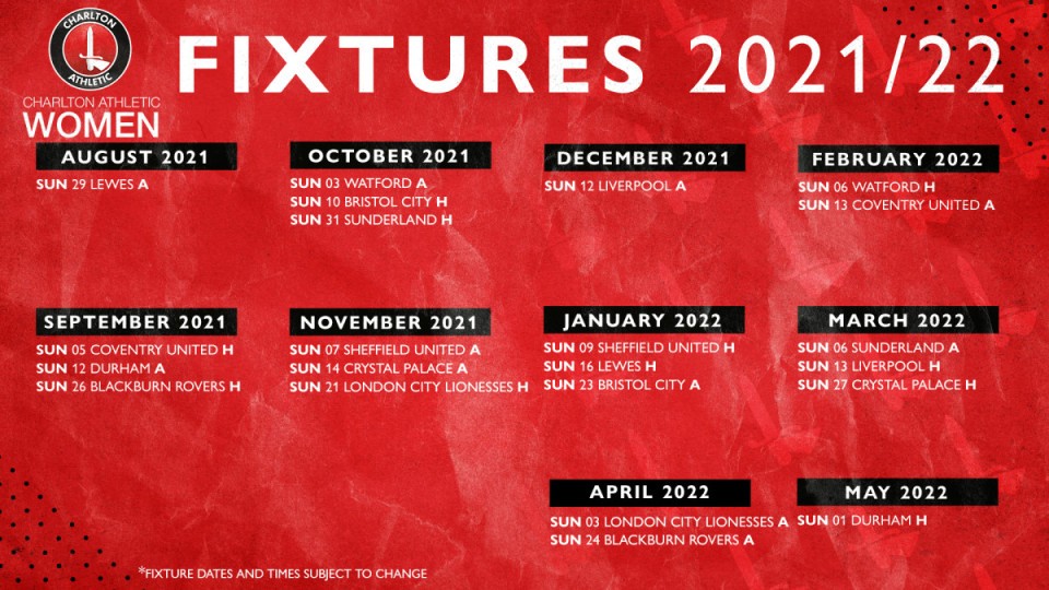 Charlton’s full set of FA Women’s Championship fixtures for the 2021/22 season can be found below with all fixtures, times and dates subject to change.