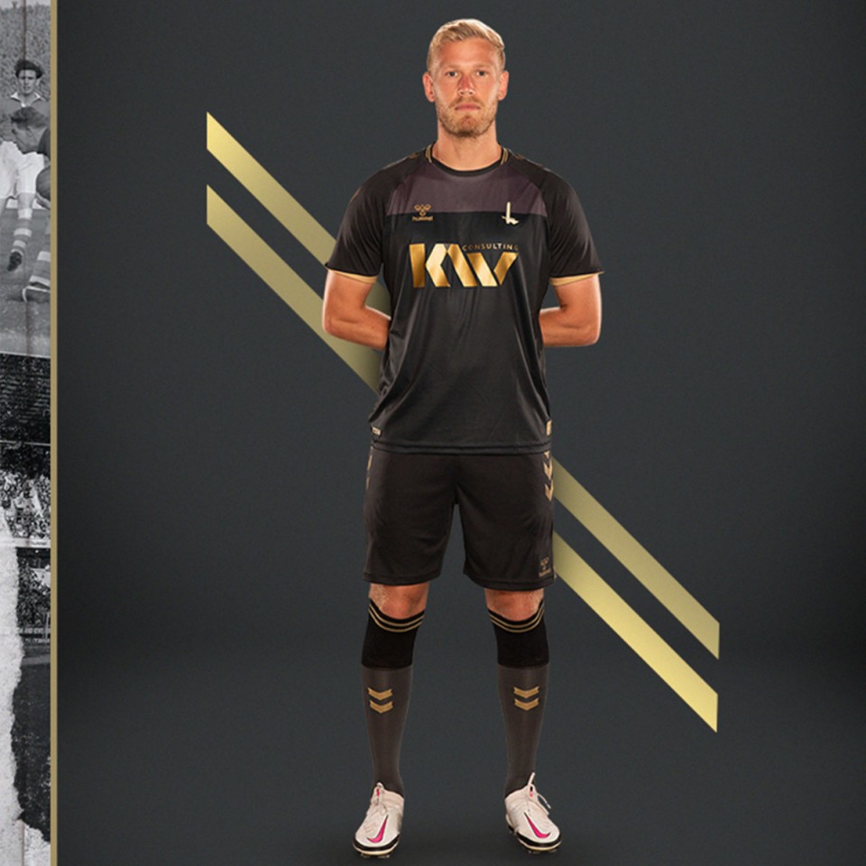 The new black shirts feature gold detailing throughout with hummel’s distinctive chevrons appearing in gold along the sleeves, gold piping on the round collar and gold on the cuffs.