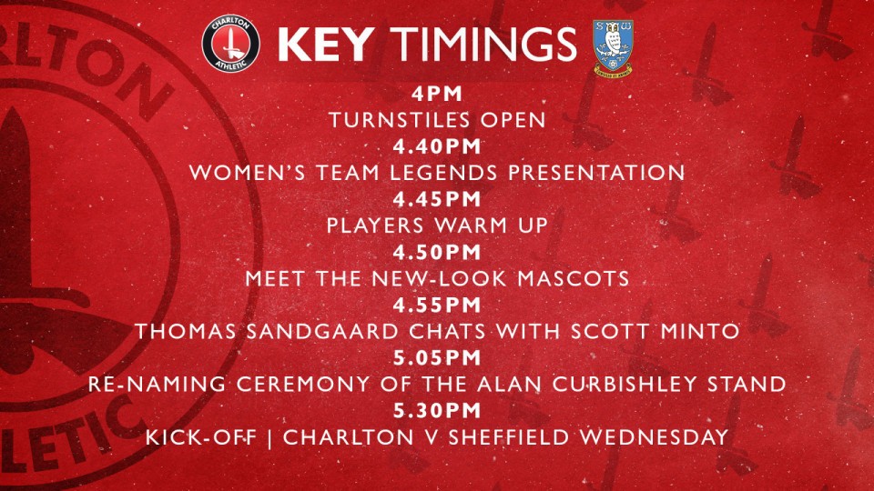 The game kicks-off at 5.30pm but the matchday begins long before that with activity in the stadium including the introduction of the club’s new mascots, an interview with Thomas Sandgaard and the official opening of the Alan Curbishley Stand.