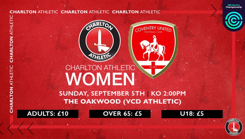 Charlton Women’s first home game of the season is on Sunday, September 5th against Coventry United. Click here to purchase tickets.