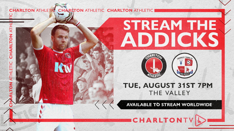Supporters all over the world will be able to watch Tuesday’s Papa John's Trophy fixture against Crawley Town live on CharltonTV (7pm KO BST).