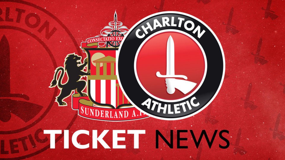 Tickets for Charlton's Sky Bet League One clash against Sunderland at the Stadium of Light on Saturday, October 23rd will go on sale at 9.30am on Friday, October 1st.