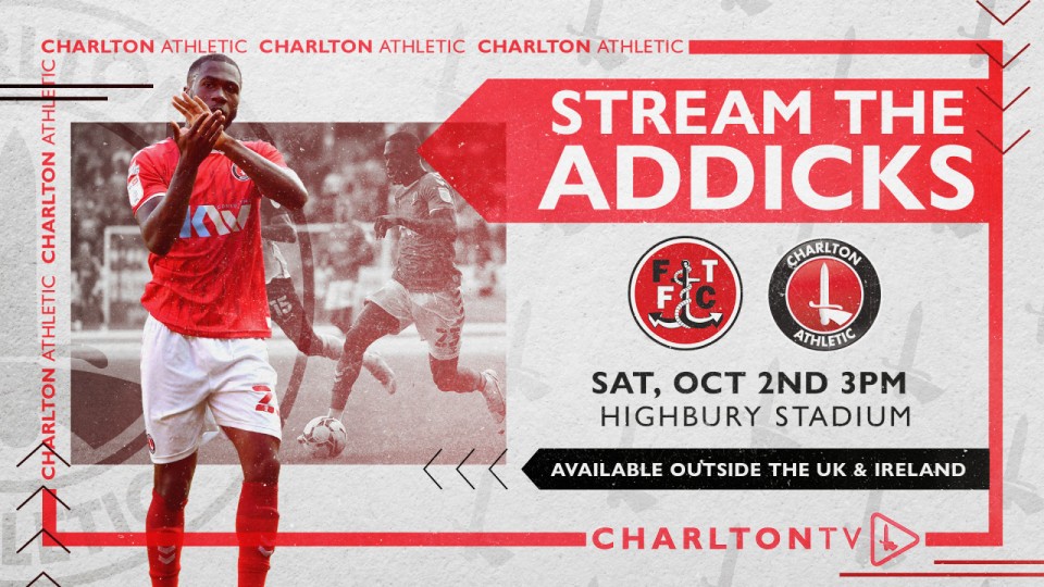 Supporters based outside of the UK* & Ireland can watch every kick of Saturday’s clash against Fleetwood Town live on CharltonTV (3pm BST kick-off).