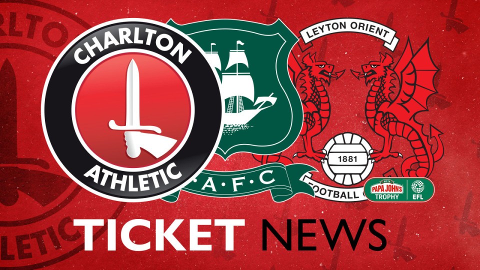 Tickets for Charlton’s Papa John’s Trophy tie at Leyton Orient, meanwhile, will go on general sale at 9.30am on Tuesday, 19th October.