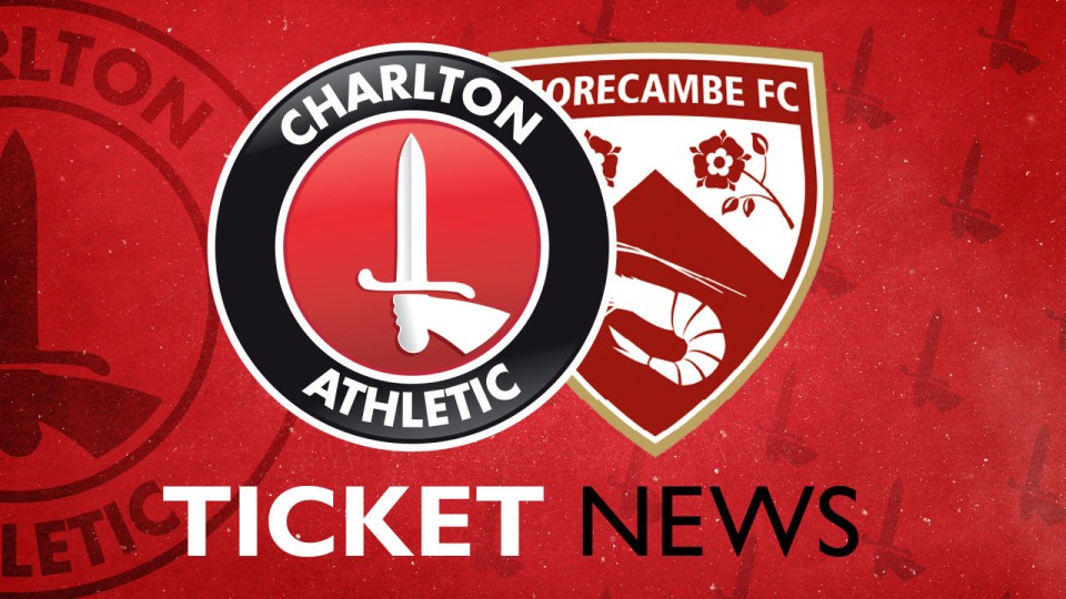 Tickets for Charlton’s Sky Bet League One clash against Morecambe at the Mazuma Stadium will go on general sale at 9.30am on Monday, October 25th.