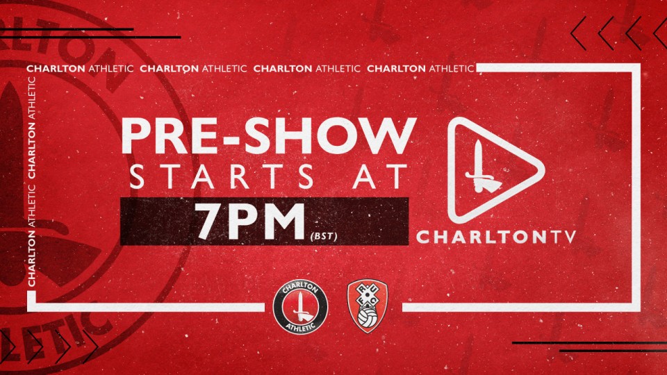 Tuesday’s CharltonTV live production will get underway from 7pm ahead of the Addicks’ Sky Bet League One clash against Rotherham United.