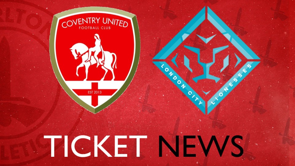 Tickets for Charlton Athletic Women’s next two home games against Coventry United and London City Lionesses are on sale.
