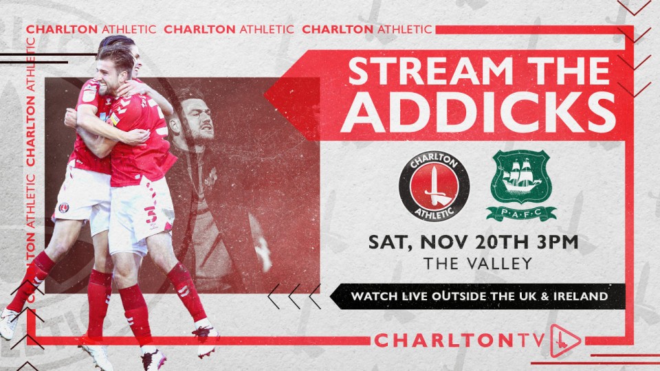Supporters based outside of the UK* & Ireland can watch every kick of Saturday’s clash against Plymouth Argyle live on CharltonTV (3pm GMT kick-off).