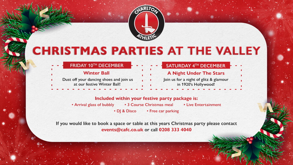 Christmas parties return to The Valley this December, with two themed nights available to book now.