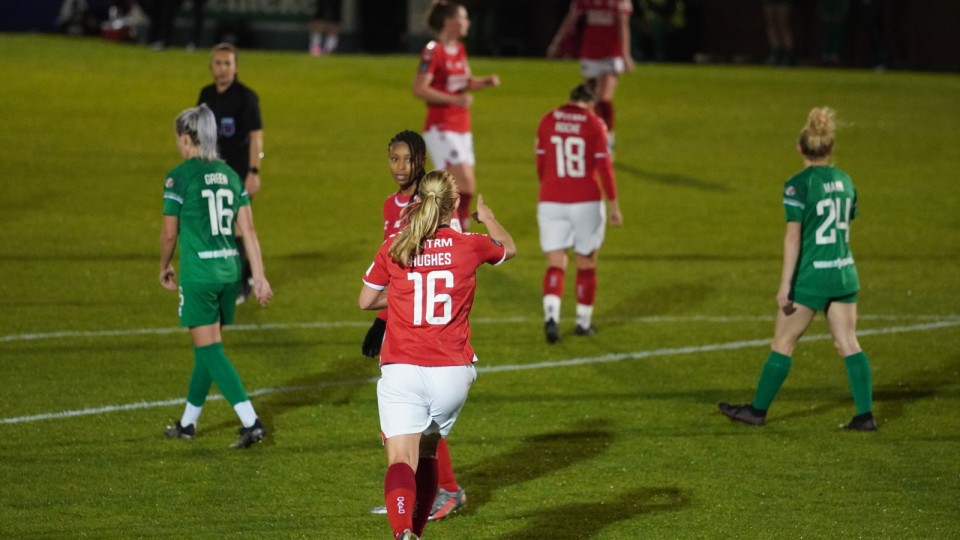 Hughes got her second and Charlton’s third with six minutes of the first half remaining, Emma Follis dinked in a cross for Hughes to poke past Thomas at the back post.