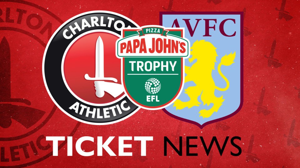 Tickets for Charlton’s upcoming Papa John’s Trophy clash against Aston Villa U21s at The Valley will go on sale from 1pm on Monday, November 22nd.