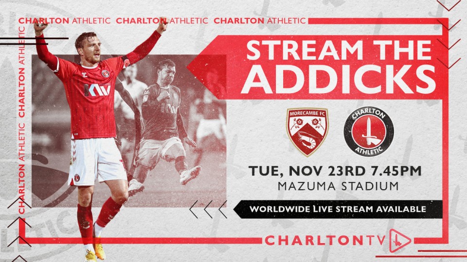 Supporters all over the world will be able to watch Tuesday’s Sky Bet League One clash against Morecambe live on CharltonTV (7.45pm GMT KO).