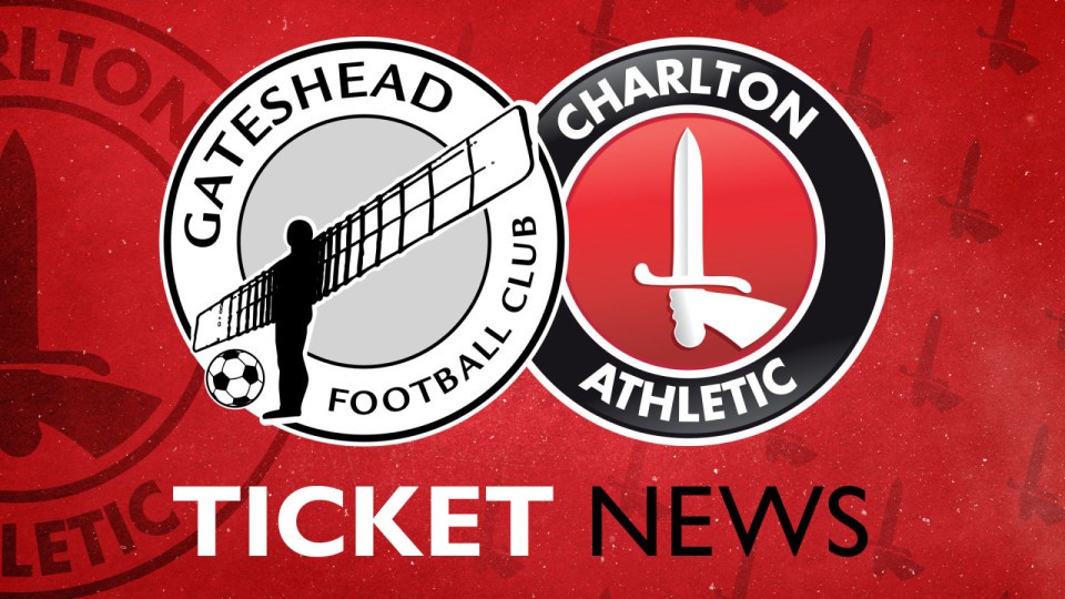 Tickets for the Addicks' FA Cup second-round tie at Gateshead will be on sale from 3pm on Wednesday afternoon and can be purchased directly from Gateshead's ticketing site.
