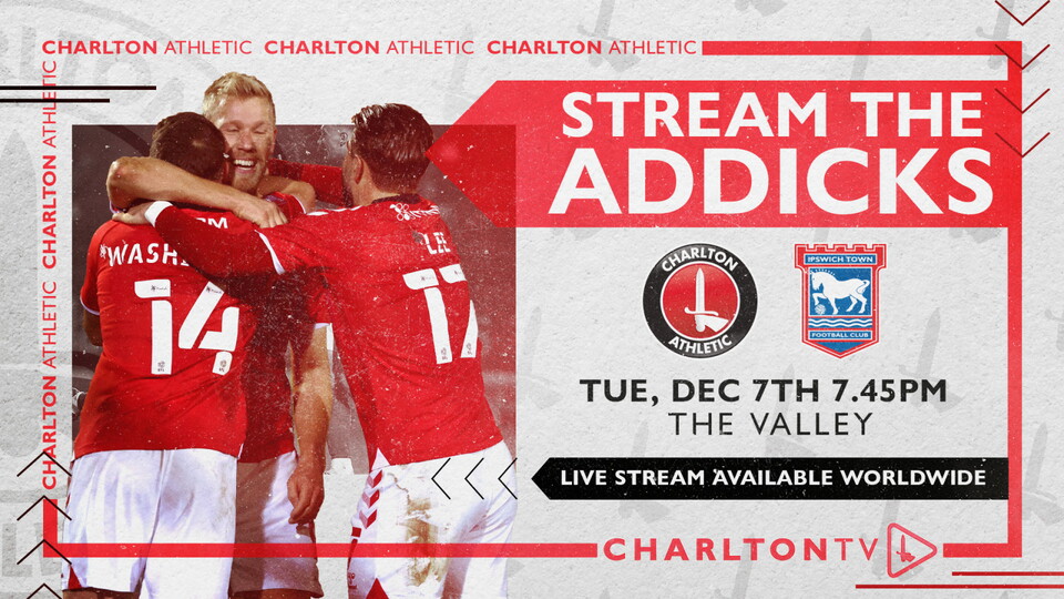 Supporters all over the world will be able to watch Tuesday’s Sky Bet League One clash against Ipswich Town live on CharltonTV (7.45pm GMT KO).