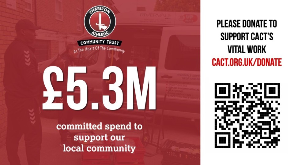 Fans can help support CACT’s award-winning work with those most in need in our community by looking out for a QR code on Saturday to set up a donation or, alternatively, by clicking here.