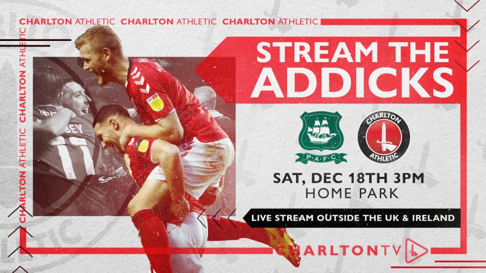 Supporters based outside of the UK* & Ireland can watch every kick of Saturday’s clash against Plymouth Argyle live on CharltonTV (3pm GMT kick-off).