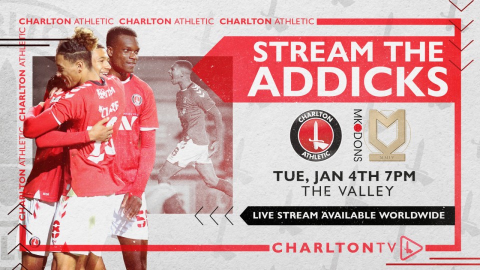 Supporters all over the world will be able to watch Tuesday’s Papa John's Trophy knockout fixture against MK Dons live on CharltonTV (7pm KO GMT).