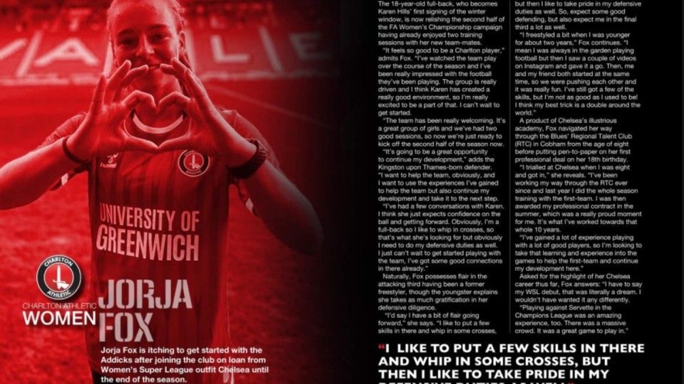 New signing Jorja Fox stars as the main feature in Charlton’s digital matchday programme for the visit of Sheffield United.