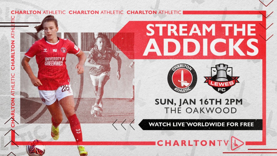 Supporters all over the world will be able to watch Sunday’s FA Women’s Championship clash against Lewes Women live on CharltonTV and YouTube (2pm KO).