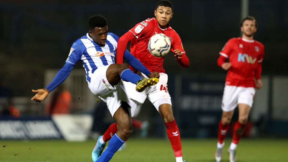 The home side took a surprise lead in the seventh minute when Joe Grey sprung the Addicks’ offside trap to get in behind the Charlton defence and on the end of a hopeful ball forward from Martin Smith. The 18-year-old showed composure beyond his years to loop the ball over the onrushing Craig MacGillivray.