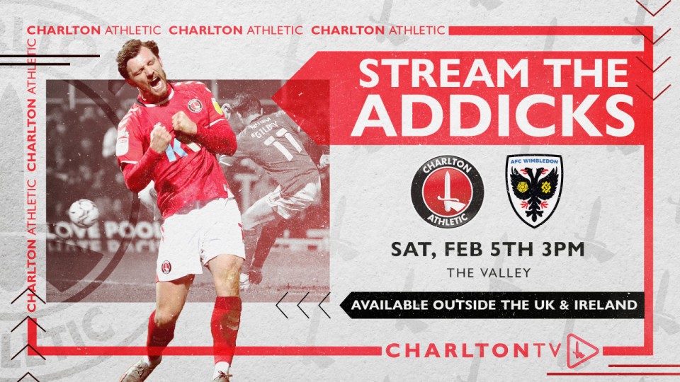 Supporters based outside of the UK* & Ireland can watch every kick of Saturday’s clash against AFC Wimbledon live on CharltonTV (3pm GMT kick-off).