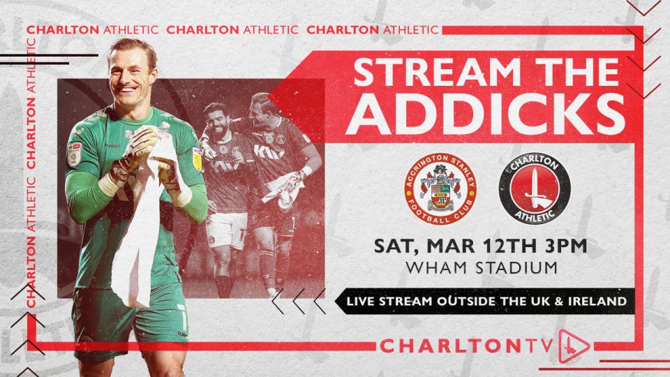 Supporters based outside of the UK* & Ireland can watch every kick of Saturday’s clash against Accrington Stanley live on CharltonTV (3pm GMT kick-off).