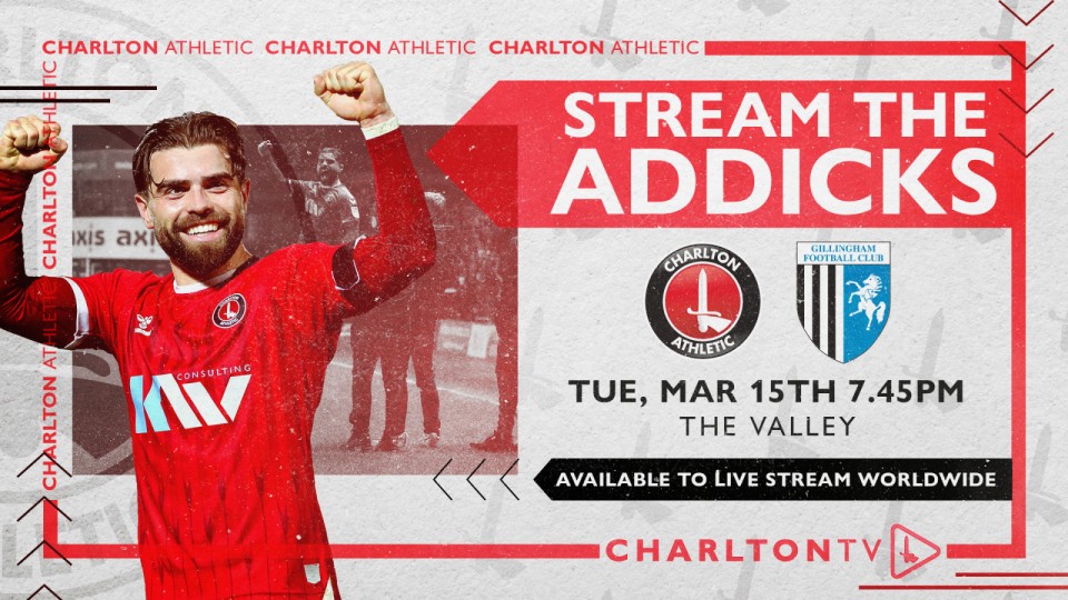 Supporters all over the world* will be able to watch Tuesday’s Sky Bet League One clash against Gillingham live on CharltonTV (7.45pm GMT KO).