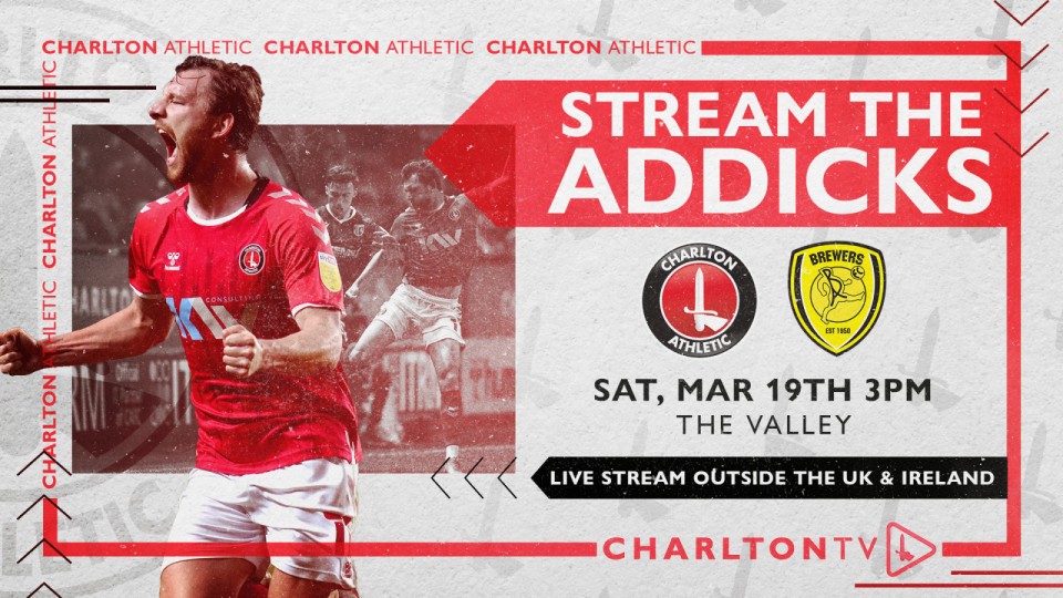 Supporters based outside of the UK* & Ireland can watch every kick of Saturday’s clash against Burton Albion live on CharltonTV (3pm GMT kick-off).
