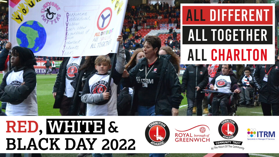 Red, White and Black Day is an initiative that has been part of the Charlton fabric for over 25 years. This year the parade from Charlton station to The Valley will include over 300 people from the Charlton family for a day that celebrates diversity and inclusion. This year’s event tagline is ‘All Together, All Different, All Charlton’.