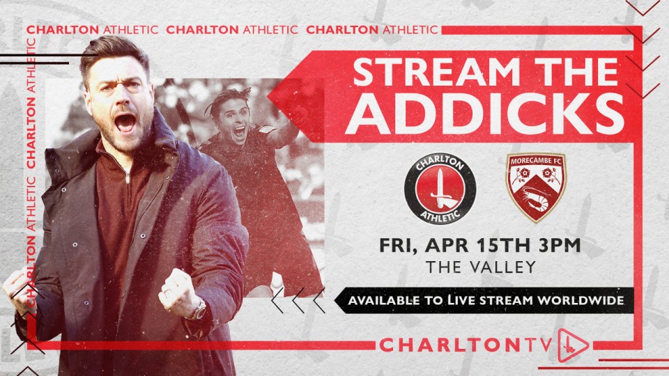 Supporters all over the world will be able to watch Friday's Sky Bet League One clash against Morecambe live on CharltonTV (3pm BST KO).