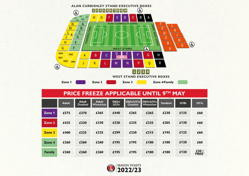 With prices frozen, Charlton remain committed to offering affordable football. The cheapest adult season ticket at The Valley in the 2022/23 season is priced at £260 which equates to just £11.30 per game.